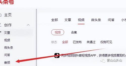 你有没有想过,在抖音、快手这些短视频平台上刷到那些让人耳朵怀孕的音频作品?是不是也想过,自己也能在头条上发布自己的音频作品,让更多人听到你的声音呢?今天,就让我来带你一步步揭开在头条发布音频作品的神秘面纱吧!